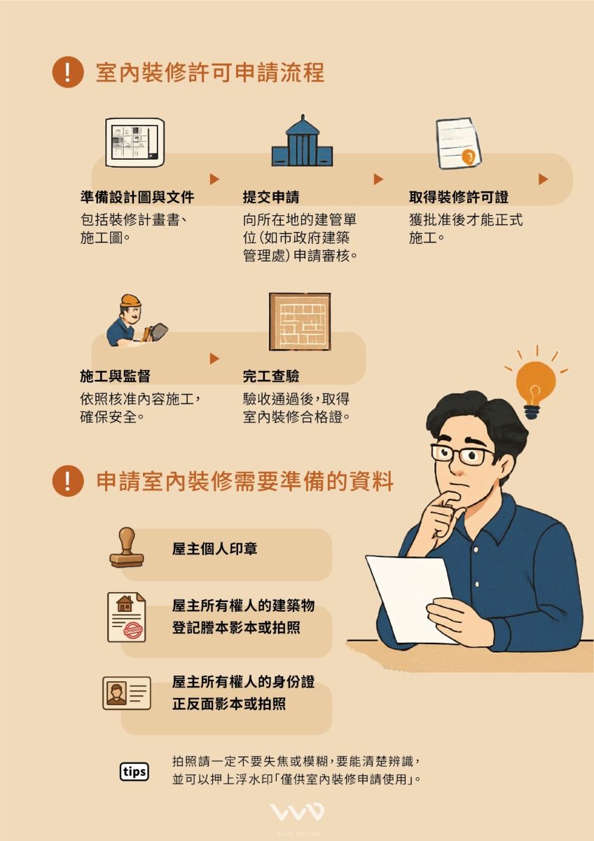 本指南將清楚說明哪些裝修需要申請許可、哪些不需要、以及如何申請、室內裝修許可申請流程,幫助屋主與設計師在裝修前做好準備,同時避免因為沒有申請許可而造成後續的麻煩。