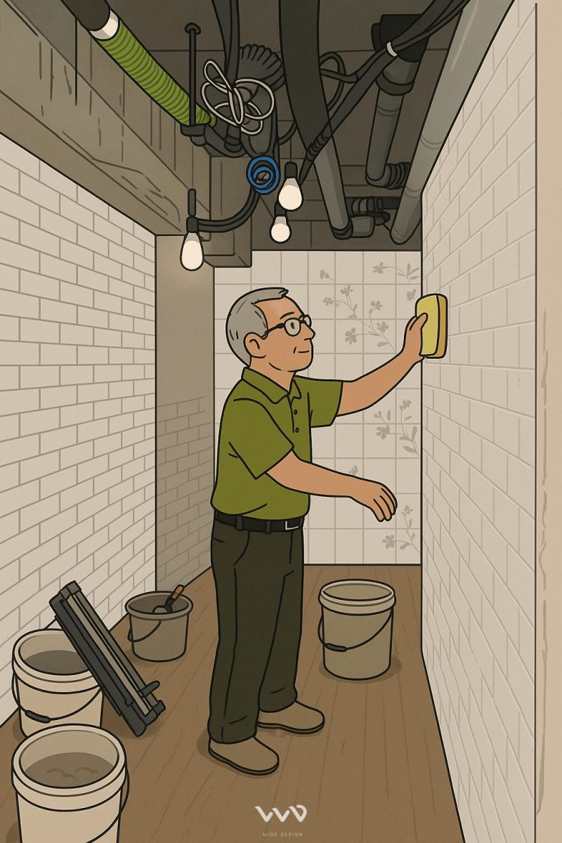 進行磁磚黏貼與材質更換,例如鋪設玄關地板磁磚、廚房牆面或地面磁磚,衛浴空間牆面或地面的磁磚,依照屋主需求進行調整。